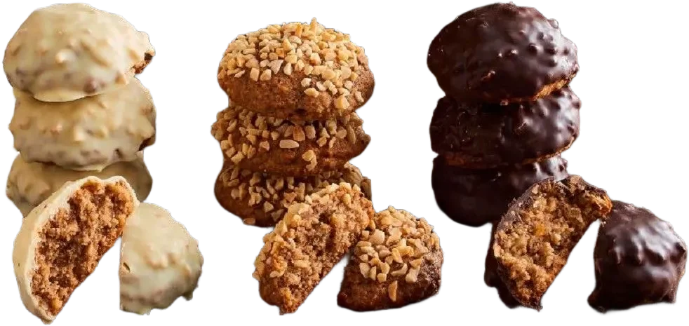 More information about 12x Malis’chen gingerbread mix Malis’chen are the little sisters of the big Almond Elise. They are baked without any nuts, are gluten-free and have a light marzipan flavor. They can be enjoyed plain, with white or dark chocolate in a coating of roasted chopped almonds. Try the range!These varieties are included in the package4x natural Malis’chen gingerbread – 30 gBaked entirely without nuts, they are gluten-free and have a light marzipan flavor. In a coating of roasted chopped almonds.Ingredients: 35.6% almonds* (19% ground, 16.6% chopped), egg white*, sugar, marzipan (almonds* (52%), sugar, water, invert sugar syrup), honey, candied lemon peel (cedar fruit peel, sugar, glucose-fructose syrup, acidifier: Citric acid), candied orange peel (orange peel, sugar, glucose-fructose syrup, acidifier: citric acid), apricot jam (apricot puree from apricot puree concentrate, sugar, glucose syrup, acidifier: citric acid, gelling agent: pectins), gingerbread spice with cinnamon, table salt*ALLERGENICNutritional values per 100g: Calorific value: 459 kcal/1912 kJ | Fat: 27 g | of which saturated fatty acids: 4.8 g | Carbohydrates: 40 g | of which sugar: 39 g | Protein: 11 g | Salt: 1 g4x Malis’chen gingerbread with white chocolate – 30 gBaked entirely without nuts, are gluten-free and have a light marzipan flavor. In a coating of roasted chopped almonds and white chocolate – just the way you like it!Ingredients: 35.6% almonds* (19% ground, 16.6% chopped), egg white*, sugar, marzipan (almonds* (52%), sugar, water, invert sugar syrup), honey, candied lemon peel (cedar fruit peel, sugar, glucose-fructose syrup, acidifier: citric acid), candied orange peel (orange fruit peel, sugar, glucose-fructose syrup, acidifier: Citric acid), apricot jam (apricot puree from apricot puree concentrate, sugar, glucose syrup, acidifier: citric acid, gelling agent: pectins), gingerbread spice with cinnamon, table saltWhite chocolate: cocoa butter, whole milk powder*, emulsifier (lecithins from soya*), vanilla extract*ALLERGENICNutritional values per 100g: Calorific value: 459 kcal/1912 kJ | Fat: 27 g | of which saturated fatty acids: 4.8 g | Carbohydrates: 40 g | of which sugar: 39 g | Protein: 11 g | Salt: 1 g4x Malis’chen gingerbread with chocolate – 30 gBaked entirely without nuts, are gluten-free and have a light marzipan flavor. In a coating of roasted chopped almonds and dark chocolate – just the way you like it.Ingredients: 35.6% almonds* (19% ground, 16.6% chopped), egg white*, sugar, marzipan (almonds* (52%), sugar, water, invert sugar syrup), honey, candied lemon peel (cedar fruit peel, sugar, glucose-fructose syrup, acidifier: citric acid), candied orange peel (orange fruit peel, sugar, glucose-fructose syrup, acidifier: Citric acid), apricot jam (apricot puree from apricot puree concentrate, sugar, glucose syrup, acidifier: citric acid, gelling agent: pectins), gingerbread spice with cinnamon, table saltChocolate couverture (cocoa mass, sugar, cocoa butter, emulsifier: lecithins (soya*), vanilla extract, cocoa: 70% minimum)*ALLERGENICNutritional values per 100g: Calorific value: 459 kcal/1912 kJ | Fat: 27 g | of which saturated fatty acids: 4.8 g | Carbohydrates: 40 g | of which sugar: 39 g | Protein: 11 g | Salt: 1 g