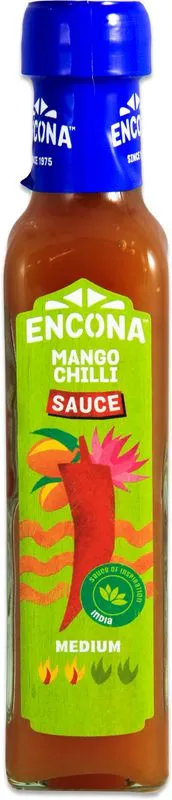 ENCONA Süße Mango Chilisauce 142mlSweet Mango ChilisauceGrillsauceIndian Inspired Ohne Zusatz von Glutamat Lassen Sie sich von ENCONA’s süßer Mango Chilisauce verzaubern. Zutaten: Wasser, Mangopüree (23%), Zuckersirup, Chilipüree (8%) (Chilis, Wasser, Salz, Säure: Essigsäure), pürierte gelbe Paprika, Säure: Essigsäure; Maracujasaftkonzentrat, modifizierte Maisstärke, Salz, Stabilisator: Xanthan; Konservierungsmittel: Kaliumsorbat; Antioxidationsmittel: Ascorbinsäure; Aromastoffe. Bei der Produktion werden natürliche Chilischoten verwendet, daher kann die Farbe leicht variieren. Nach dem Öffnen kühl lagern und vor dem Ablauf des Mindesthaltbarkeitsdatum aufbrauchen. Inhalt: 142ml Mindestens Haltbar bis: 01. 09. 2026 Herkunft: Vereinigtes Königreich Bottled in the UK for Grace Foods UK, Grace House, WGC. Herts. AL7 1HW Importeur: ASIA EXPRESS FOOD, Kilbystraat 1, 8263 CJ Kampen (NL) Versandgewicht: 430g Durchschnittliche Nährwertangaben pro 100ml Average Nutritional Values per 100ml Brennwert / Energy 461kJ / 109kcal Fett / Fat 0,5g davon gesättigte Fettsäuren / of which saturates 0,2g Kohlenhydrate / Carbohydrates 25g davon Zucker / of which sugar 25g Eiweiß / Protein <0,5g Salz / Salt 1,7g