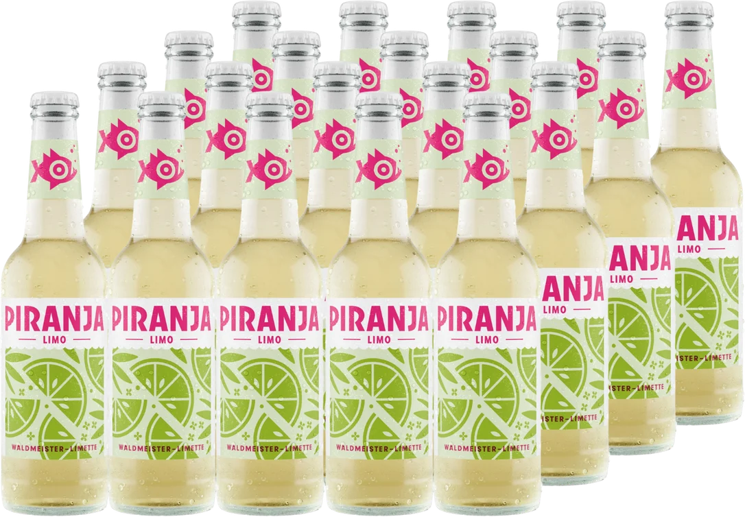 Alle Informationen zu 20 x PIRANJA-LIMO Waldmeister-Limette Natürlicher Waldmeister vereint sich mit der feinen Säure der Limetten. Dabei entsteht eine elegante Kombination mit einer sanften floralen Note. Du glaubst du kennst Waldmeister-Limonade? Lass dich verzaubern! Die Limonade mit Waldmeister-Limettengeschmack ist komplett vegan.