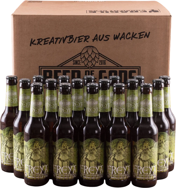 Alle Informationen zu 20x Freya Frühjahrsbock Die Verbindung des Meeresgottes Njörd mit Skadi, der Göttin der Jagd und des Winter, brachte Freya hervor. Sie gilt als die Anführerin der Walküren und ist die Göttin des Glückes, der Liebe, der Fruchtbarkeit und des Frühlings.Die Welt erwacht nach langem Winter, Schnee und Eis schmelzen hinfort unter der Last des neuen Lichtes. Die Natur reckt und streckt sich die noch tauben Glieder. Was kann uns mehr erstarken als ein trefflicher, kräftiger Trank? Unser Frühlingsbock weckt die Vorfreude auf den Sommer.Das Bier ist hell und spritzig, kräftig aber nicht zu stark. Es ist süffig, aber nicht zu süß, fruchtig-hopfig, jedoch nicht zu bitter. Freya stillt die Hitze hinfort, aber wärmt an den noch kalten Tagen.