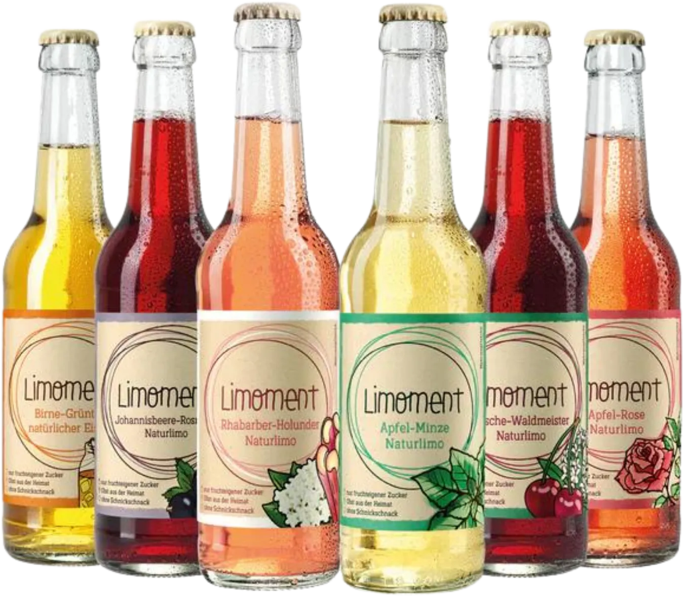 Dir fällt die Entscheidung welcher Limoment es heute sein soll genauso schwer wie uns? Dann gönn dir einfach alles aus unserem Gedeck! Egal ob als Probierpaket im 6er-Format, oder direkt ne ganze Kiste – die kunterbunte Vielfalt ist dir gesichert.