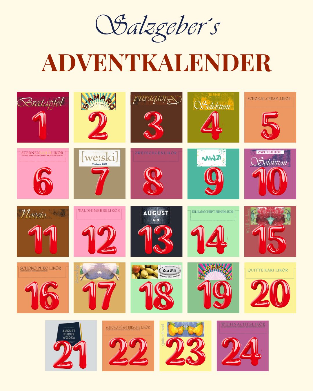 Hinter jedem Türchen wartet ein Stück Brennkunst aus dem Herzen Babenhausens: feinste Brände, edle Liköre und außergewöhnliche Kreationen aus unserer Brennerei. Von fruchtig bis cremig, von klassisch bis überraschend – dieser Kalender macht die Adventszeit zu einer genussvollen Entdeckungsreise.