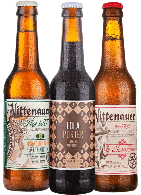 More information about Alcohol-free 9 beer set The non-alcoholic package from Brauhaus Nittenau.Contents:3x Lola Coffee Porter non-alcoholicBrewed in the British porter style, this mixed beer drink is the ideal symbiosis of coffee and beer. Mixed with a good scoop of roasted malt, chocolaty notes combine elegantly with the roasted Arabica beans of Mokka natural from the Rehorik roastery in Regensburg.Taste: Chocolaty notes, roasted Arabica mocha beansNutritional values per 100 ml: Energy: 135 kJ / 32 kcal | Carbohydrates: 6.9 g | of which sugar: 3.5 g | Protein: 3x WIT non-alcoholic – orange peel & corinaderThe Wit is a non-alcoholic beer in the style of a Belgian Wit beer. The non-alcoholic character is produced with a special yeast that cannot ferment malt sugar. Curacao orange peel and crushed coriander seeds are traditionally added when boiling the wort and for lagering the beer.Taste: fruity orange and aromatic, refreshing corianderNutritional values per 100 ml: Energy: 108 kJ/26 kcal | Carbohydrates: 5.4 g | Fat: 0 g | of which saturated fatty acids: 0 g | Protein: 0.4 g | Salt: 3x Le Chauffeur – non-alcoholic IPAA non-alcoholic beer without compromising on taste. The hop varieties Chinook, Callista, Simcoe and Mosaic give the beer unique fruity notes.Taste: very fruity thanks to 4 different hop varietiesNutritional values per 100 ml: Energy: 136 kJ / 32 kcal | Carbohydrates: 6.8 g | of which sugar: 3.4 g | Salt: 0.005 g | Fat: 0 g | of which saturated fatty acids: 0 g | Protein: 0.5 g