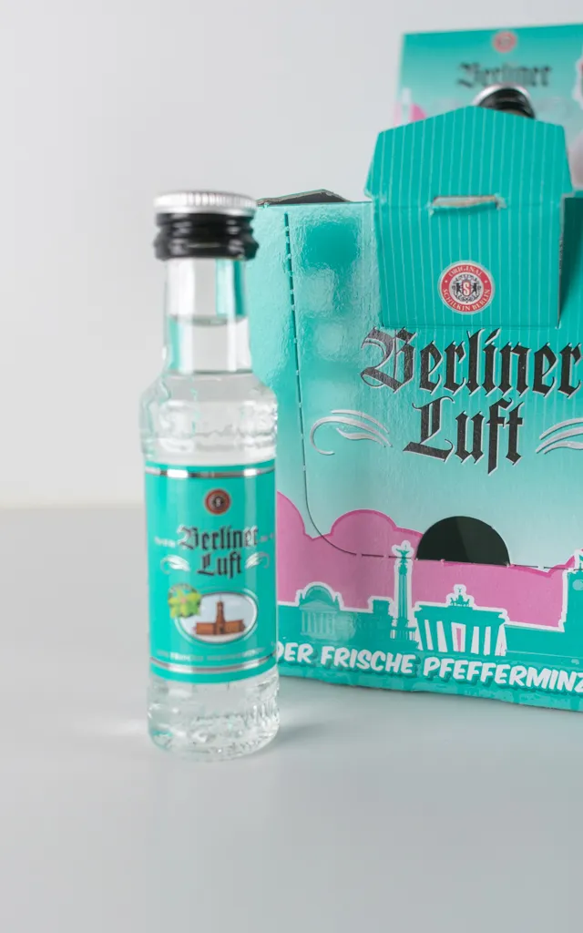 Der frische Pfefferminzlikör. Klar und frisch, wie die Berliner Luft eben so ist. Das Kultgetränk der Berliner Partyszene ist stets ein gern gesehener Gast. Gut gekühlt ist die Berliner Luft nicht nur pur ein kulinarischer Hochgenuss, sondern auch hervorragend zum Mixen von stylischen Cocktails und Longdrinks aller Art geeignet.