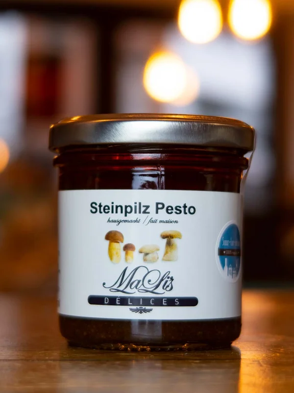 Herbstgeschmack im GlasWenn es mal schnell gehen soll, gibt es nichts besseres als ein paar frisch gekochte Nudeln und dazu ein leckeres Pesto von MaLis Delices wie z.B. dieses Steinpilz Pesto. Das hausgemachte Pesto wird aus einem hochwertigen BIO Rapsöl hergestellt und verfeinert mit getrockneten Tomaten Parmigiano Käse und Petersilie. Eine wahre Gaumenfreude.
