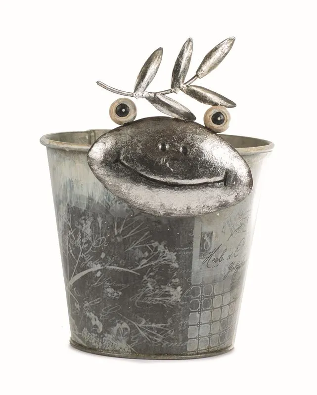 Blumentopf mit lächelndem Frosch aus Zinkblech / Umtopf H 18 cm | Ø 12 cm / Zink