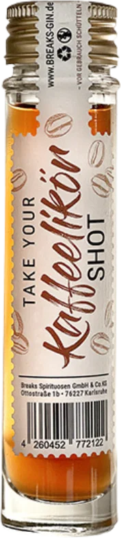 More information about Breaks coffee liqueur Gin lover or coffee lover? The Breaks gin-based coffee liqueur is for both at the same time and provides an extra energy kick with its 30 % vol.Breaks London DRY GIN forms the basis, combined with fine coffee distillates and cold-brewed coffee made from the finest Arabica coffee beans, this is the perfect pick-me-up.Rounded off with subtle notes of brown sugar, this liqueur has a sophisticated balance of sweet and strong flavors.