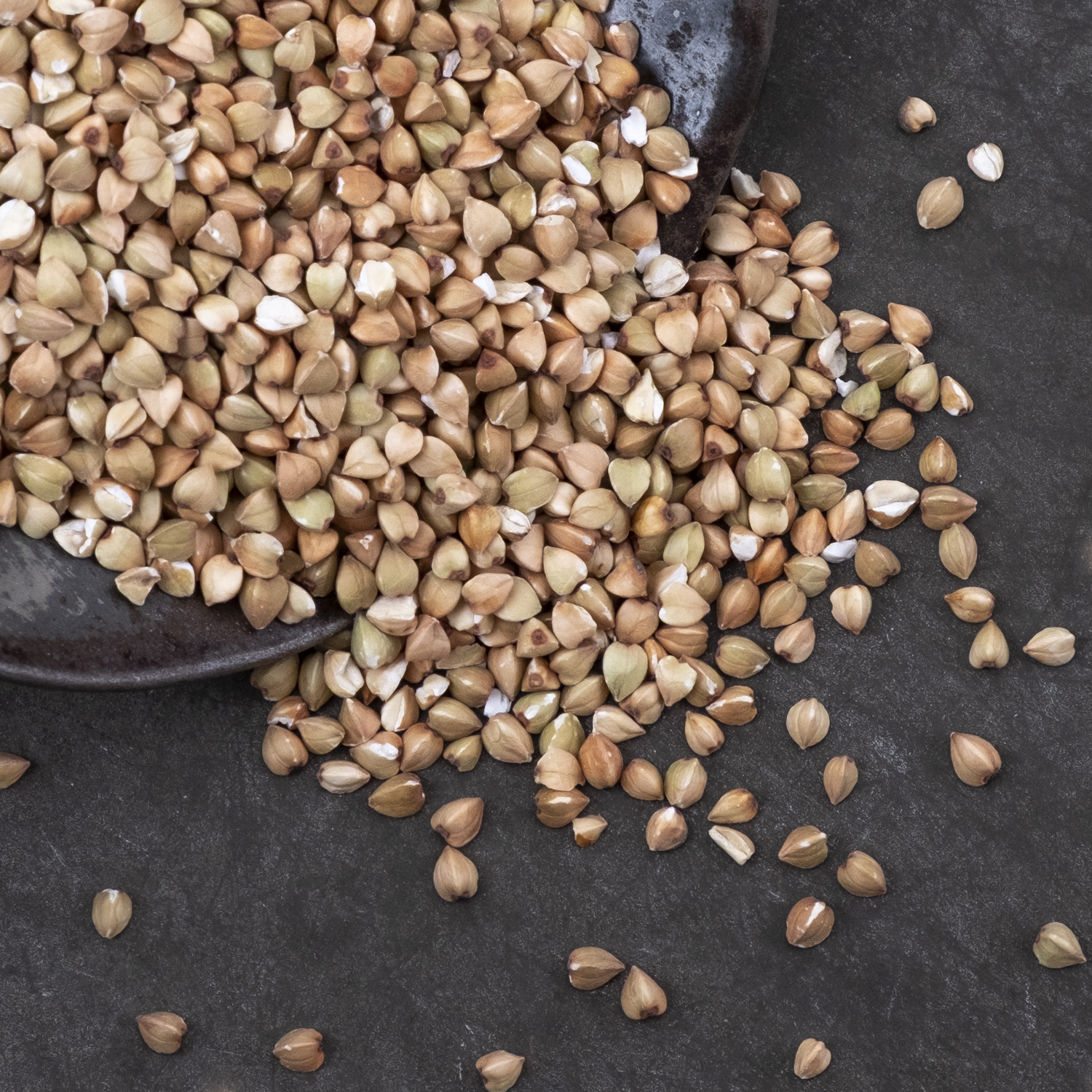Buckwheat is a gluten-free pseudograin with a distinct nutty flavour. Originally from Central Asia, it is high in quality protein, fibre, magnesium, and iron. When roasted, buckwheat adds a crunchy, nutty note to salads, muesli, or bowls. Cooked, it serves as a perfect gluten-free side dish, salad base, or warm porridge.