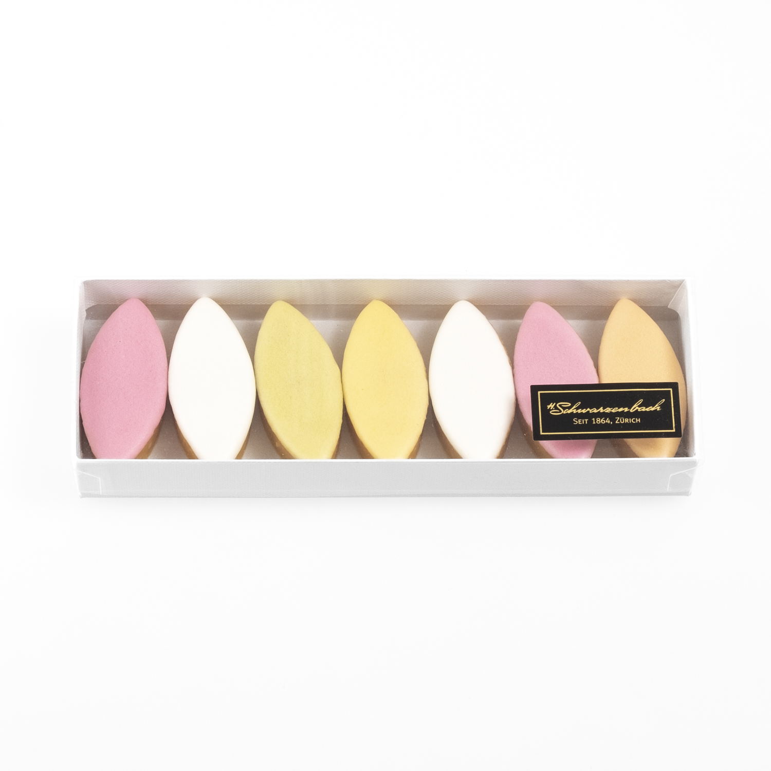 Finest biscuits from the south of France made according to a traditional recipe dating back over 500 years. With finely grated almonds, candied melons and oranges, in different flavours such as lemon, raspberry, orange.
