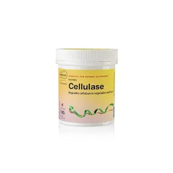 Baut Zellulose in Gemüse und Obst ab. Konzentrierter Enzymkomplex, der von Hefen produziert wird. Er baut Cellulose ab, die in Früchten und anderen Pflanzenteilen vorhanden ist, und klärt Säfte und Schalen, verflüssigt und erweicht Teile von rohem Obst und Gemüse, sodass der Geschmack frisch bleibt. Das Produkt mit Celluläse-Lösung bedecken, injizieren oder eintauchen. Für eine höhere Leistung wird eine Imprägnierung mit 2-5 Vakuumzyklen empfohlen. Es kann direkt auf das Pulver auf dem Produkt aufgetragen werden.