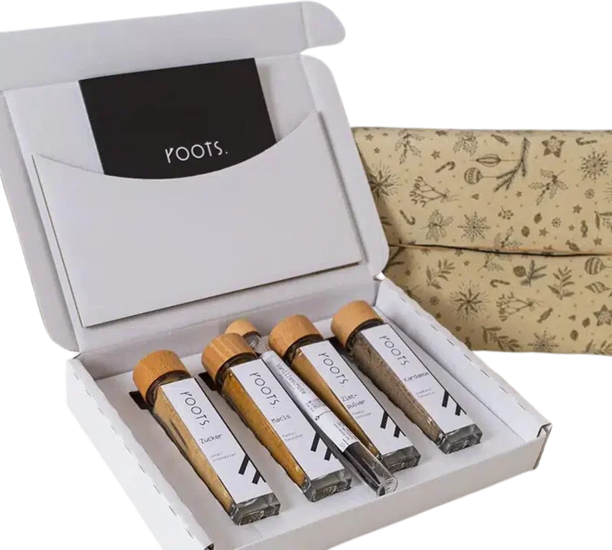 More information about Christmas spices 5s tasting package Christmas spices refine your Christmas cookies and add special flavors to your holiday dishes. Or would you like to give the noble Christmas spices as a gift? Then a high-quality wooden stand made of beech could additionally refine the Christmas spice package.This is included in the package1x turmeric organic – 28 gWith green cardamom you refine your winter dishes. Especially at Christmas time, the exclusive powder adds citrusy flavors to your dishes such as vegetables, stews, fruits and pastries. The powder is processed fresh from the seeds (without shell!) to increase the intensity of flavor, making it a true premium product.Taste: intense aromatic, eucalyptus freshness, characteristic spiciness.1x Mace mace powder organic – 29 gMace refines especially pastries and desserts excellent. But also savory dishes you can refine with the spicy flavors targeted.Taste: peppery-floral, light fruity notes, eucalyptus freshness.1x Ceylon cinnamon powder organic – 28 gThis cinnamon powder from the real cinnamon tree is processed at roots. own, sieved several times and bottled fresh by hand in small batches. Cinnamon brings sweetness to vegan pastries. At the same time, cinnamon also enhances savory vegan dishes.Taste: soft, mild, spicy-sweet1x Coconut blossom sugar organic – 35 gWith coconut blossom sugar you refine your pastries and desserts wonderfully. Thereby less sweetness and at the same time a nice caramel note appears. If your pastries need more sweetness, combine it with high-quality raw sugar.Taste: spicy-caramel, less sweet1x Vanilla Bean Organic – 5 gA vanilla bean smells so wonderful and fits into so many sweet as well as savory vegan dishes.Taste: full-bodied warmth, creamy-sweet, floral, woody.