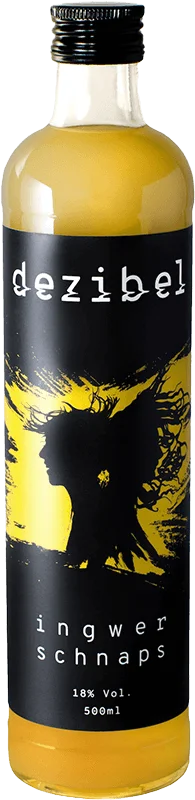 More information about decibel ginger schnapps We prepare an infusion of fresh ginger in alcohol as the basis for the ginger schnapps. Our combination of sugar and agave syrup ensures a balanced sweetness. The fresh and spicy aroma unfolds best when you drink it slightly chilled as a shot. Bring your cocktail to life with a dash of ginger. Due to the natural ingredients, some ginger will settle at the bottom of the bottle over time. So shake vigorously before enjoying!