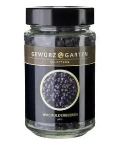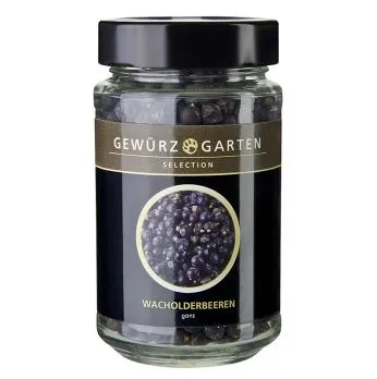 Diese blau-schwarzen kugeligen, erbsengroßen Beeren sind botanisch gesehen, die kleinen Zapfen des Wacholderstrauches. Durch den Gehalt an Harz und ätherischen Ölen haben sie einen nadelholztypischen Geruch. Ihr würziger, süß-bitterer Geschmack wird in der Küche besonders zu Sauerkraut, zum Würzen von Wildgerichten, Wildragouts- und Saucen, Jägersuppen, Schmorbraten, Pasteten und Marinaden geschätzt. Ebenso sind Wacholderbeeren ein wichtiger aromatisierender Bestandteil von Gin.