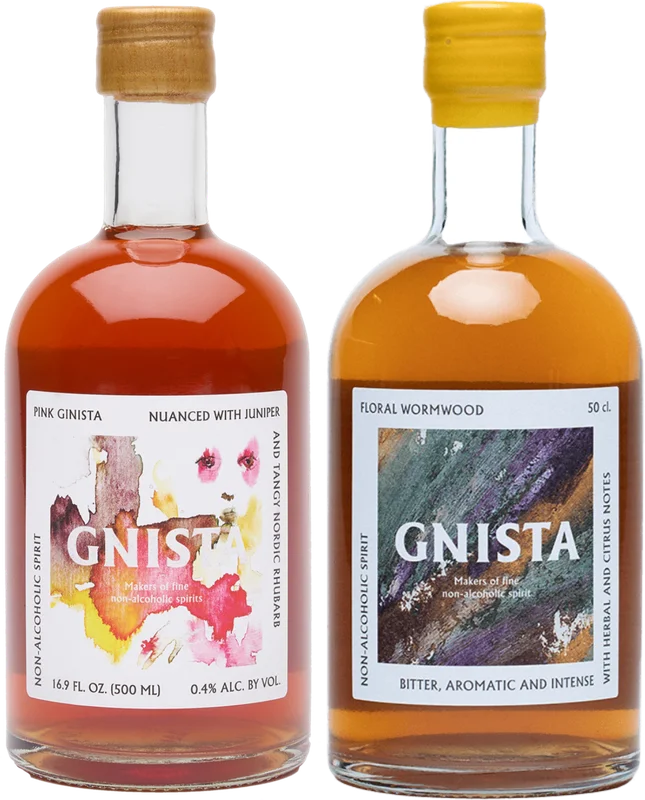 More information about GNISTA non-alcoholic tasting pack Get the ultimate GNISTA alcohol-free tasting pack and enjoy the trendy non-alcoholic drinks from Sweden!This is included in the GNISTA alcohol-free tasting package1x GNISTA Floral Wormwood – Al cohol-free aperitif alternative | 0.5 lThe non-alcoholic aperitif GNISTA Floral Wormwood tastes refreshing and aromatic at the beginning, followed by bitter notes of wormwood and herbs, hints of orange peel and a floral finish. Non-alcoholic. Ideal for non-alcoholic cocktails, on ice, with a tonic or on its own as an aperitif.Ingredients: Water, rhubarb juice, beet syrup, dried spices & fruits (raisins, ginger, oak, wormwood, chamomile, black pepper, lovage), infusions of (almond, orange, oregano, juniper, stair anise, habanero), sea salt, preserved with sodium sorbateNutritional values per 100 ml: Energy: 247 kJ/59 kcal | Fat: 0.1g | of which saturated fatty acids: 0g | Carbohydrates: 13.8g | of which sugar: 13.8g | Proteins: 0.3g | Salt: 0.02g1x GNISTA Pink – Non-alcoholic gin | 0.5 lOur latest is pretty pink. But it also has body, length and complexity. The taste is strongly influenced by classic gin botanicals, but Pink Ginista also offers fresh notes of spring rhubarb and green tea. Rounded off with a peppery finish. Works anytime and anywhere. Enjoy it neat with ice, mixed with tonic or as a spritz.Ingredients: Water, NFC rhubarb and cranberry juice, sugar beet syrup, botanicals (ginger, pepper, green tea, cinchona bark), extracts from vodka (juniper, coriander, habanero), sea salt, botanical distillate. Preserved with potassium sorbate and sodium benzoateNutritional values per 100 ml: Energy: Energy: 247 kJ/59 kcal | Fat: 0.1 g | of which saturated fatty acids: 0 g | Carbohydrates: 12.5 g | of which sugar: 12.5 g | Protein: 0.3 g | Salt: 0.02 g