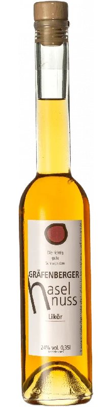 More information about Gräfenberg hazelnut liqueur The hazelnut gives the liqueur a unique taste thanks to its pronounced aromatic sweetness. Hazelnut liqueur is ideal for mixing cocktails, refining coffee or enjoying on its own.