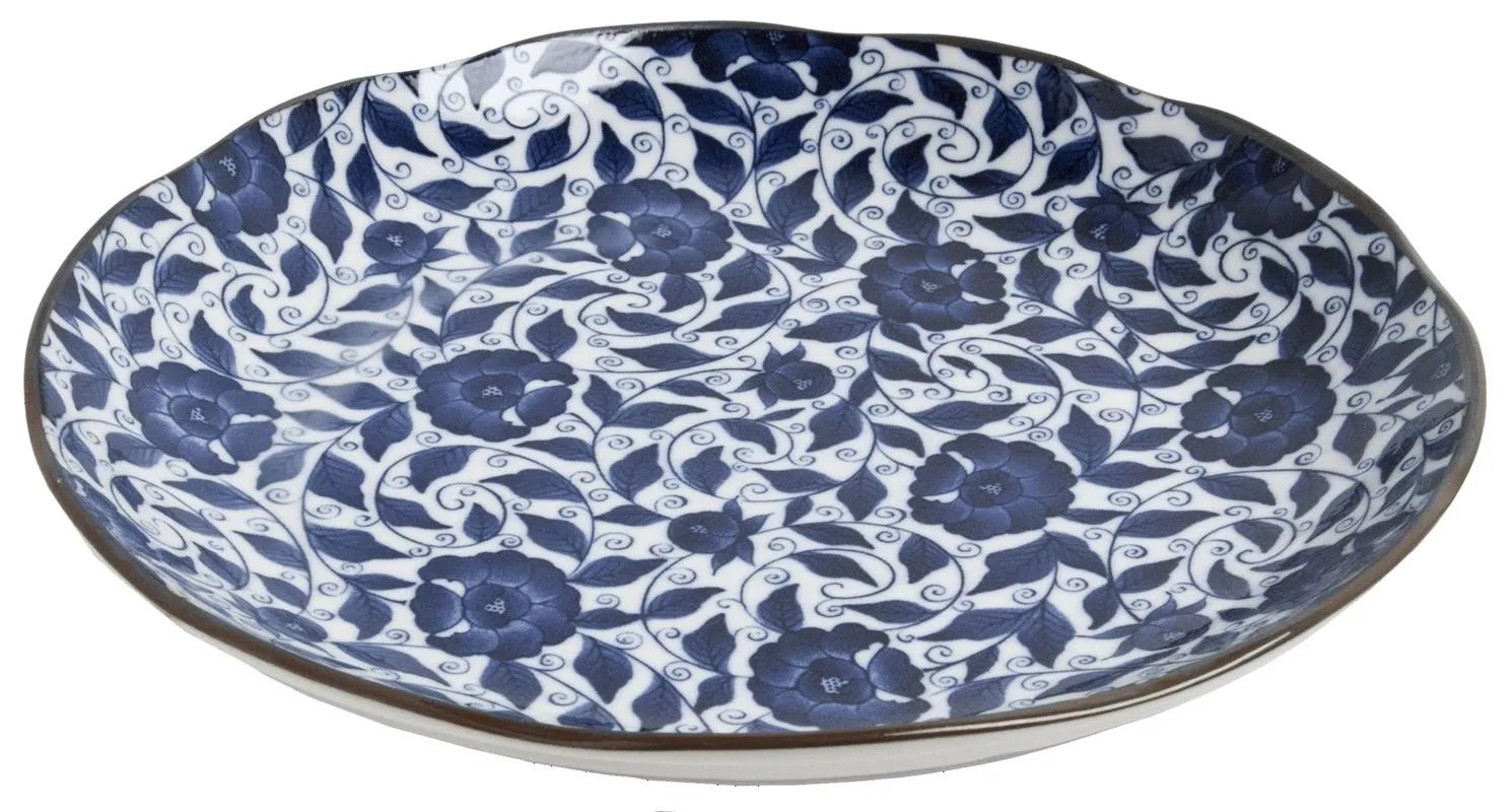 Sushi-Teller / Essteller Ø 24.7 / Höhe 3.5cm aus der Serie MADE IN JAPAN Mit blauem Blumendekor auf weißem Grund, Unterseite weiß. Am oberen Rand leicht geschwungen. Maße (alle Angaben ca.): Ø 24.7 / Höhe 3.5 cm Mikrowellen geeignetSpülmaschinenfest Herkunft: Japan Versandgewicht: 750g