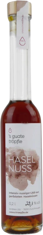 More information about Hazelnut Intensely nutty liqueur made from freshly roasted hazelnutsFreshly roasted hazelnuts are the basis for this liqueur with its beguiling aroma. Its fine but intense nutty aroma makes it a unique taste experience of a special kind.The aroma already reveals its freshly roasted base and origin. Intense, yet harmonious and full-bodied, but not too sweet in taste, our hazelnut leaves a lasting impression with its fruitiness.This product contains hazelnuts – these contain allergens and can cause allergic reactions.For perfect enjoymentSlightly chilled, our nut liqueur unfolds its unique aroma in an incomparable way.It tastes best from a shot glass in a cozy atmosphere.To preserve the quality, always store in a dark, upright and cool place. With our nut liqueur, you are buying the full enjoyment of hand-roasted hazelnuts and the art and tradition of regional production.Additional product information about our nut liqueurSales : Nut liqueur made from freshly roasted hazelnutsAlcohol content: 29.1% vol (the stated alcohol content may vary depending on the batch)Filling quantity: 200 ml
