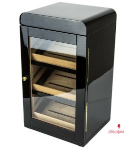Dieser edle Humidor in Form eines eleganten Schranks vereint großzügige Kapazität mit klassischem Design – perfekt für anspruchsvolle Zigarrenliebhaber. Das hochglänzende schwarze Finish und die verglasten Türen machen ihn zu einem stilvollen Blickfang in jedem Raum.