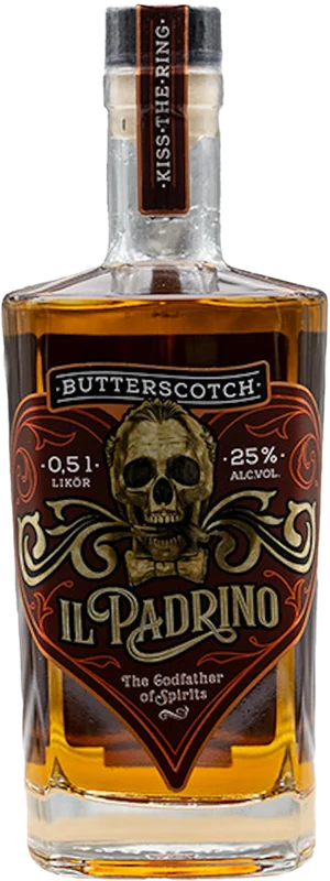 More information about IL PADRINO Butterscotch liqueur Discover the seductive taste of Il Padrino Butterscotch! This unique liqueur combines the delicious aromas of butterscotch toffee in a sophisticated glass.With an alcohol content of 25 percent, it is the perfect companion for special moments.The popular English sweets with sweet, creamy caramel, vanilla and chocolate have now found their way into Il Padrino. The butterscotch flavors are harmoniously integrated into the liqueur and ensure incomparable enjoyment.Whether for men or women, this brown liqueur is equally popular. Enjoy Il Padrino Butterscotch chilled neat or at room temperature – its taste unfolds excellently in both ways.Indulge yourself and your guests by serving this delicious liqueur as a sauce over ice cream or with fruit salad. Every bite will be a real treat for the palate!
