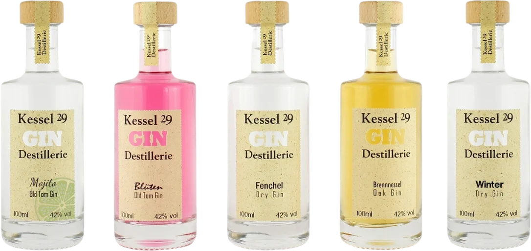 More information about Kettle 29 Gift Box The Kettle 29 gift box.All gins of the Kessel 29 distillery to try.The Kessel 29 gift box is the right gift idea for every gin fan and for gin beginners. Contents of the Kessel 29 gift box:100ml Fennel Dry Gin 42% vol.100ml Blossoms Old Tom Gin 42% vol.100ml Nettle Oak Gin 42% vol.100ml Winter Dry Gin 42% vol.100ml Mojito Old Tom Gin 42% vol.