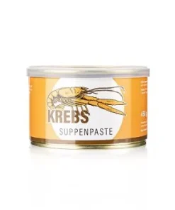 Küchenfertige Paste zur Herstellung einer Krebssuppe. Zutaten: Pflanzenfett, WEIZENMEHL, KREBSKÖRPERAUSZÜGE, Salz, natürliche Aromastoffe, Farbstoff: Paprikaextrakt. Zubereitung: Für einen Teller Krebssuppe 25g dieser Paste mit 1/4 Liter Wasser oder Fleischbrühe ansetzten, glatt verrühren und aufkochen lassen. Nach Geschmack würzen und mit Sahne oder Cognac die Suppe verfeinern. Als Einlage z.B. Krebs- oder Hummerfleisch. Ungeöffnet kühl (max. +20°C) und trocken lagern. Nach Anbruch gekühlt lagern.