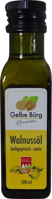 Alle Informationen zu Manufaktur Gelbe Bürg Walnussöl Die Nüsse für das prämierte Walnussöl werden von Hand gesammelt. Sie stammen ausschließlichaus fränkischen Haus-, Hofgärten und Streuobstwiesen der Region um den Gelben Berg in Sammenheim.Die Nusskerne werden nach dem Knacken vonHandsortiert. Nur aus einwandfreien Kernen wird ein kaltgepresstes Öl gewonnen. Alle Trübstoffe werden nur durch eine langsame Sedimentation entfernt. Das Öl wird keinerlei Filtration oder einer sonstigen Behandlung unterzogen. Die wertgebenden Stoffe bleiben erhalten.Das Öl hat einen feinen nussig-milden Geschmack und eignet sich besonders für Blatt- und Rohkostsalate, zum Verfeinern von Süßspeisen und Käse.Es sollte nicht erhitzt werden. Nach dem Öffnen bitte kühl und dunkel lagern. Es enthält selbstverständlich keine Zusatzstoffe. VEGAN!