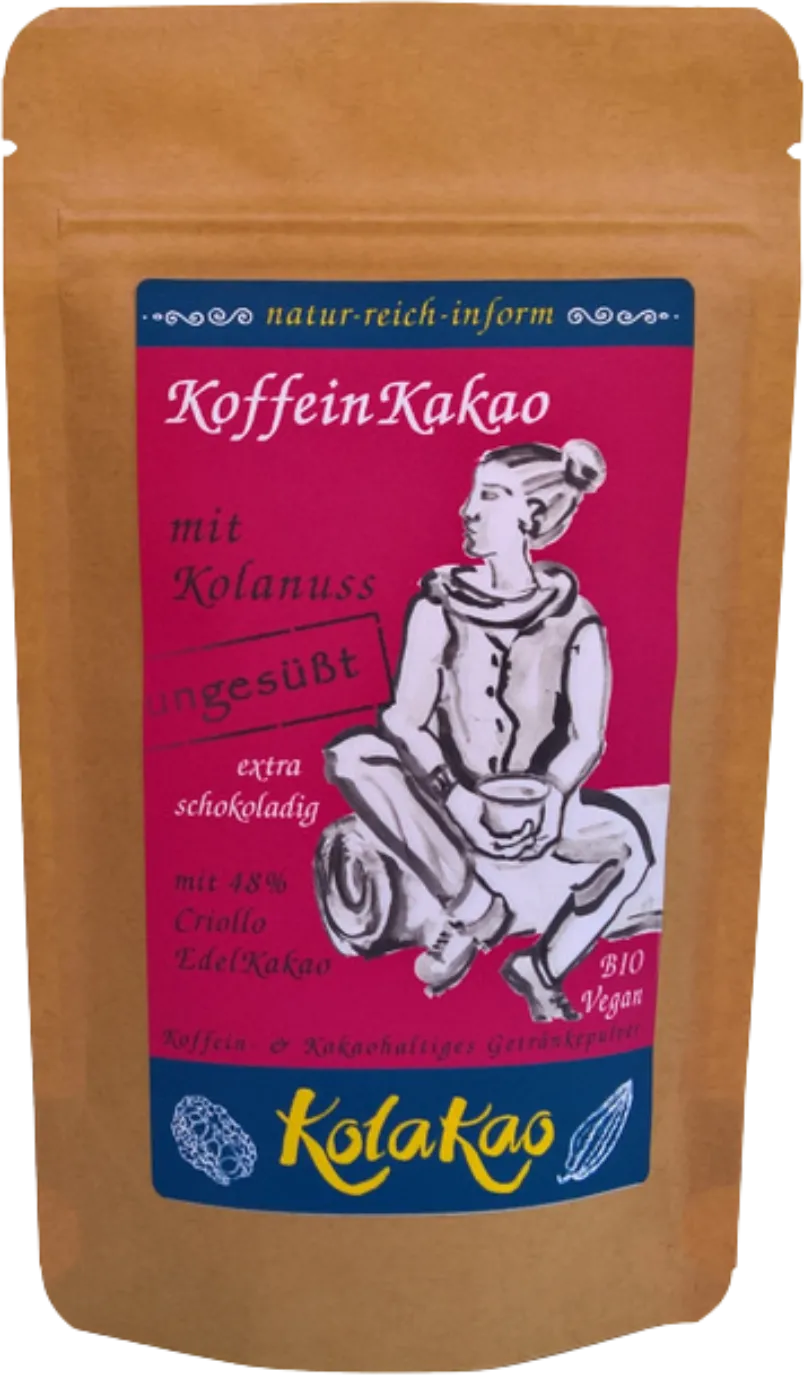 Einfach aber effektiv, auf die Wirkung kommt es an und der extra schokoladige Geschmack ist Zugabe. Der Klassiker unter den KolanussKakaos ohne Zuckerzugabe, nicht viel drumherum nur einfach gut und in sich ruhend rund. Das Getränkepulver, wenn es auf die Kombination von lang anhaltendem KolanussKoffein und beglückendem Edelkakao im Alltag ankommt.