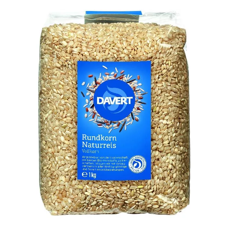 Naturreis Rundkorn ist entspelzt, wobei jedoch der Keimling und das Silberhäutchen unangetastet bleiben. Somit verfügt er über alle wichtigen Inhaltsstoffe und ist Ernährungsphysiologisch besonders wertvoll. Naturreis benötigt eine längere Kochzeit und hat einen recht starken Eigengeschmack. Er ist 4-5 mm lang und maximal zweimal so lang wie dick. Beim Kochen nimmt Naturreis Rundkorn ebenfalls mehr Wasser auf und enthält mehr Amylopektin. Einen Teil seiner Stärke gibt der Rundkornreis beim Kochen an das Wasser ab, wodurch es milchig wird.
