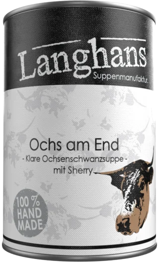 Alle Informationen zu Ochs am End Klare Ochsenschwanzsuppe mit Sherry KRÄFTIGE OCHSENSCHWANZSUPPE MIT SHERRY UND ZARTEN FLEISCHWÜRFELN?️ 100 % Handarbeit vom Profi-Koch.? Fleisch und Gemüse aus der Region.? Beste Zutaten brauchen keine Zusatzstoffe.⌛ Zeit sparen im Alltag – in 2 Minuten auf dem Tisch.? Perfekt zum Bevorraten.? Mein Porsche unter den Suppen:eine Kraftbrühe wie aus dem Lehrbuch. Das Geheimnis? Nur bestes Fleisch aus der Region und viel Zeit. Buon appetito!