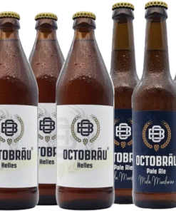 More information about Octobräu TastingBox Tasting box with various beers from our permanent beer range and seasonal beers. The current seasonal highlight is our fresh wheat beer with sapphire hops.This is included in the package:3x Octobräu Helles – 0.5 l | 5.1 % vol.Our Helles with fantastic drinkability. A Bavarian Helles with a subtle but special interpretation. With a radiant light color combined with a great full body and a very finely embedded, nuanced hop note.Hops: Cascade, Citra, Mandarina Bavaria, Simcoe3x Octobräu Saphir Weizen – 0.5 l | 4.9 % vol.Named after the main hop variety, this wheat beer has, as the hops promise, flowery to citrus-fruity fresh aromas. These are offset by the strong banana aroma typical of wheat beer, which is guaranteed by the choice of yeast and the special fermentation process. A quaffable wheat beer that is not heavy on the stomach. Perfect beer for mild summer evenings and cool winter days.Hops: Saphir3x Octobräu Malin Mandarina Pale Ale – 0.5 l | 5.1 % vol.The perfect starter for all those who want to discover a special beer and expand their taste horizons in beer heaven. The classic English beer style has been underpinned by the selection of fine aroma hops with a pleasantly fresh citrus aroma. The light, tart aroma paired with a pleasant maltiness makes this beer a real hit!Hops: Cascade, Citra, Mandarina Bavaria, Simcoe3x Octobräu Surfers Ale Lahnwelle – 0.5 l | 4 % vol.Taste the freshness of the wave! A wonderfully refreshing ale. Reduced alcohol with a full-bodied taste.Hops: Amarillo, Citra