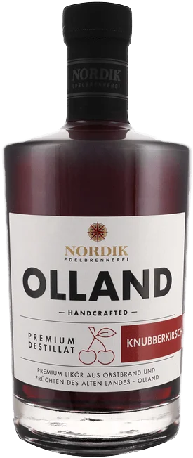 More information about Olland Knubberkirsch Our unique fruit liqueur is made from ripe Knubber cherries from the „Altes Land“ and fine cherry distillate. The best hand-picked Knubber cherries are left to mature in fine cherry distillate for several months before we process the resulting extract into our liqueur. The fully aromatic cherry distillate gives our liqueur its special taste.The „Knubberkirsche“ is not a type of cherry but the generic term for the thick, sweet cherries that are so characteristic of the „Alte Land“.Unique liqueur preparation: We obtain the special liqueur aroma with its fruity note from the whole fruit, to which we also owe its natural cherry color. We are currently the only producer in northern Germany to use this process.