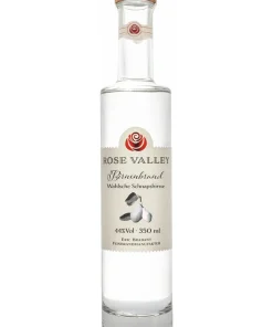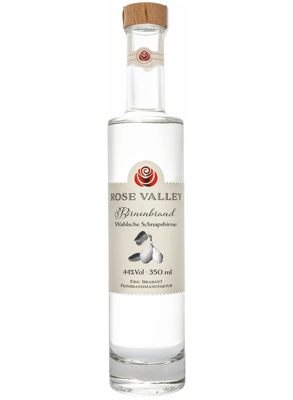 More information about Rose Valley pear brandy Wahlsche Schnapsbirne Birnenbrand Wahlsche Schnapsbirne is a pure pear brandy. From the connoisseur’s point of view, Wahlsche Schnapsbirne is the true „queen of pears“. It provides an unforgettable, unique and full-fruity pear flavor and is also round, balanced and complex. Due to its consistency, it is not suitable for consumption and is therefore not of interest for conventional cultivation, but the pear is excellent for fine distillates.Aroma:slightly nutty, powerfully broad pear aromaIngredients:Pears, harvested and processed to perfection, from the Lake Constance regionProcessing:The fully ripe fruit is processed directly after harvesting, and gently cold fermented.Production:Gentle double distillationBottling quantity:approx. 500 bottles per yearUsage:as a digestif or with dessert as a corresponding fruit flavoringAlcohol content:44 % vol.