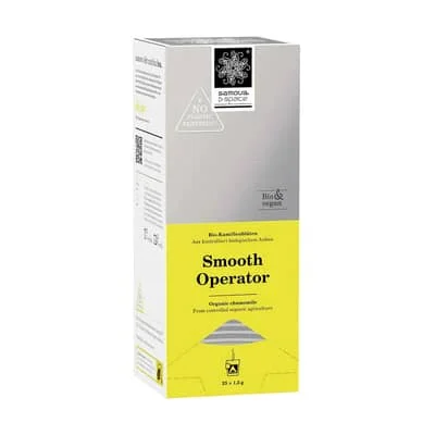 Aufgrund ihrer türkischen Wurzeln gehörte für samova-Gründerin Esin Rager Tee stets zu den Grundnahrungsmitteln. Als junge Mutter in der Hafenstadt Hamburg entschied sie sich im Jahr 2002 dazu, eine Premium-Teemarke zu gründen, die für kreatives Design, Achtsamkeit, kulturelle Vielfalt, Nachhaltigkeit und Klima-Gerechtigkeit steht. Der Smooth Operator Kamillentee wurde in 25 Beutel zu je 1.5g verpackt, mit denen sich die Zubereitung ganz einfach gestaltet. Es handelt sich um die getrockneten Blüten der Kamille, die schon seit der Antike für ihre beruhigende und wohltuende Wirkung geschätzt wird. Der Tee erweitert seit 2009 die Kollektion und ist eine der wenigen Monosorten in samovas Sortiment.Zubereitung: Pro Glas einen Beutel mit kochendem Wasser aufgiessen und 5-6 Minuten ziehen lassen. Factsheet als PDF downloaden Samova Smooth Operator Space Bio Kamillenblütentee Box mit 25 Teebeutel |Drinks.ch