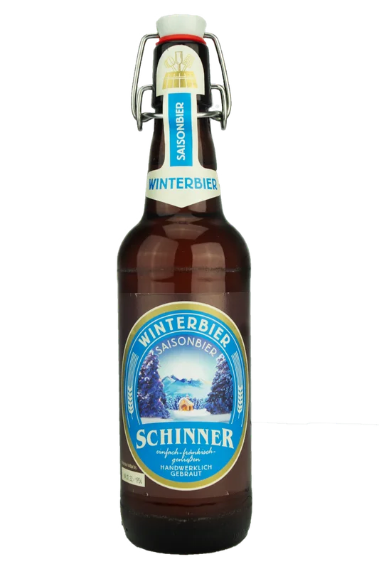 More information about Schinner winter beer The Schinner brewery complements our wide range of festive seasonal beers with an unagitated Franconian delicacy: festive beers are often voluminous creations with a strong sweetness, a variety of winter spices and a powerful character. The handcrafted winter beer from the Bayreuth brewery, on the other hand, scores with the directness and handfastness of Franconia.The seasonal beer specialty is brewed in late summer so that it can mature to its full glory in the cool cellars of the brewery in autumn. Good things take time, as this fine beer proves once again. The patient wait is rewarded with a classic winter beer that delights with its intense maltiness, mild hop notes and full-bodied aroma.The Franconian is visually appealing with its chestnut-brown color, which is tinged with a copper shimmer when exposed to light. The warm brown body is topped with a tidy crown of delicately tinted foam, which has an enticing aroma of sweet malt, dried red fruit, toffee and freshly brewed coffee. The first sip surprises with strong carbonic acid that makes the aromas dance on the tongue. Roasted malt covers the taste receptors like a warm blanket, while strong caramel, cookies, woody notes and a hint of herbal hops harmonize with the taste. The crowning glory of the beer experience is a hop-accented finish that combines herbal notes with sweet malt.