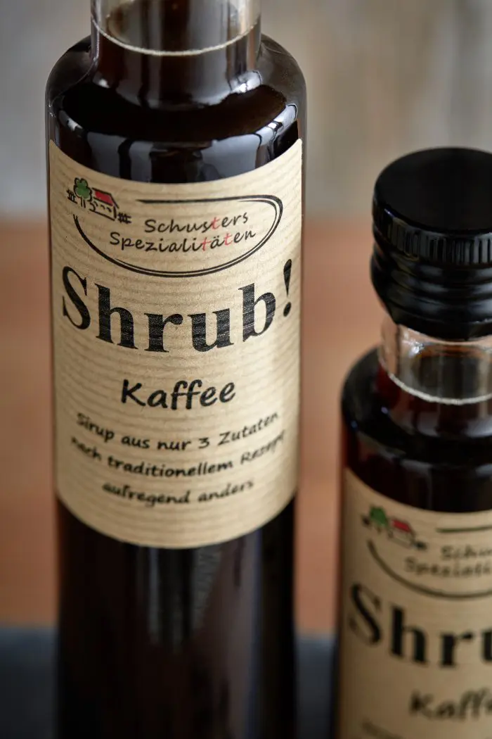 Für unseren Shrub! Kaffee verwenden wir einen sehr hochwertigen Kaffee von einer kleinen Kaffeerösterei. Dieser Shrub! mit seiner feinen Kaffeenote eignet sich zum Beispiel hervorragend als Digestif pur nach dem Essen. Außerdem kann Shrub! Kaffee auch sehr gut für Desserts verwendet werden, z.B. als Spiegel über eine Panna Cotta, zu Vanilleeis oder in einer Mousse au chocolat.
