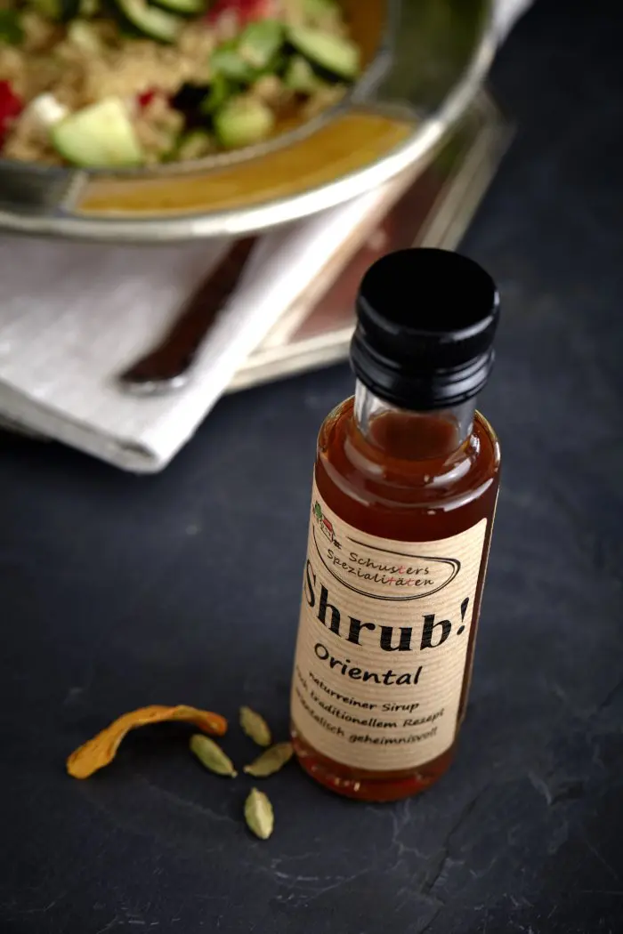Er eignet sich hervorragend für die orientalische Küche und passt sehr gut zu Ofengemüse, Bulgur- und Couscoussalat. Auch zum Abrunden von Saucen und Dips ist Shrub! Oriental äußerst empfehlenswert. Sogar Desserts, wie zum Beispiel einem Bratapfel verleiht der Sirup eine orientalisch geheimnisvolle Note. Perfekt für experimentierfreudige Hobbyköche.
