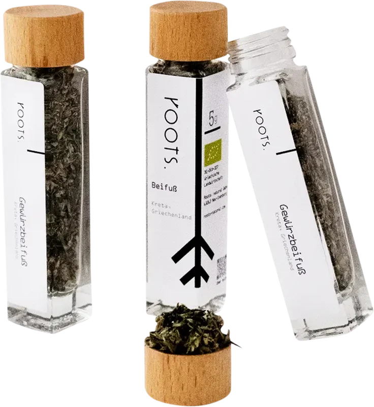More information about Spice mugwort organic Mugwort is great for seasoning pork, lamb and fatty fish. Or for vegan dishes with legumes such as peas or lentils. In addition, mugwort supports the strengthening of the immune system. Because of the bitter notes, we recommend using mugwort selectively and discreetly.For us, the following applies: only directly and from biodynamic small-scale cultivation from a local partner on the island of Crete. Only sustainable herbs from controlled wild collections or organic small-scale cultivation come into the assortment. We have been on site for every product, pay very fairly and pay strict attention to environmental protection. As a family business, we store, inspect, sort and pack all herbs by hand. Herbs naturally from the origin:Altitude and proximity to the Mediterranean SeaBiodynamic small-scale cultivationSupport of sustainable agricultureExpertise of the grower