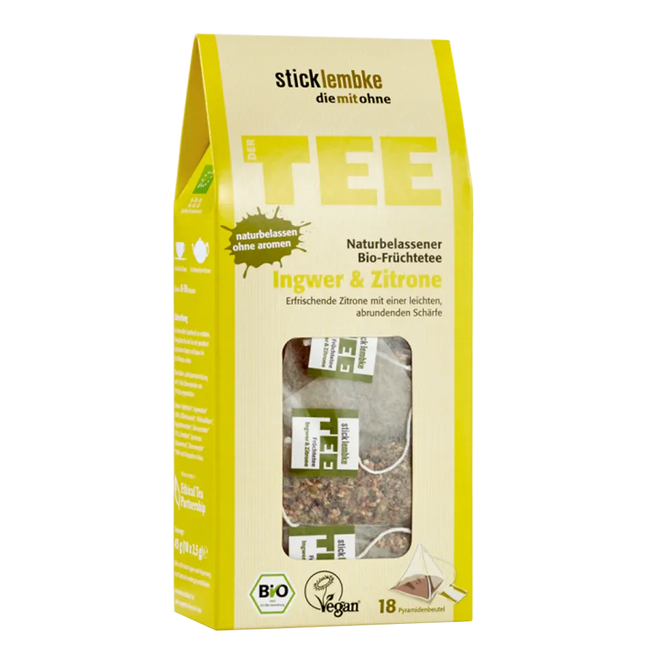 stick & lembke Bio Ingwer & Zitrone, 18 Pyramidenbeutel