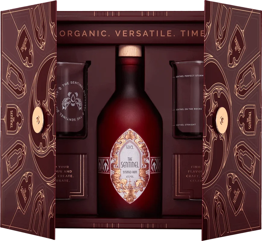 Alle Informationen zu The Sentinel Artefakt Rum Geschenkset Wie ein Artefakt, das aus den tiefsten und ältesten Ruinen einer verlorenen Zivilisation ausgegraben wurde, enthält diese Geschenkbox Schätze, die alle Zeit überdauern. Elegante Verzierungen geben dieser Box einen geheimnisvollen Touch und sorgen von Anfang an für eine besondere Stimmung. Öffne seine Klappen und dich empfängt ein Kabinett mit einer 500ml Flasche Sentinel Scented Rum, zwei besonderen Gläsern, einer Cocktailbroschüre mit Rezepten und 4 Cocktail Scents. Dieses Geschenkset ist das ultimative Bundle für alle Rum Kenner, die stilvolle Cocktails lieben. Verliere dich in der Zeit und beschenke dich selbst oder deine Liebsten mit diesem einzigartigen Set: Das Sentinel Artefakt.Das ist im The Sentinel Rum Artefakt Geschenkset enthalten1x The Sentinel Scented Rum – 0,5 l | 41 % vol.Vielseitig, erfinderisch, ausgereift – voll komplexer Aromen von Vanille, Karamell und Früchten. Ein Hochgenuss aus Tradition & Technik: Durch Acoustic Ageing unterstützte Reifung erhält das noch junge Destillat den reifen Geschmack von getoasteten Eichenfässern und Pedro Ximenez Sherryfässern.2x The Sentinel Glas – BecherglasDas formschöne Becherglas, passend zum Scented Rum. Mit praktischen Maßangaben für puren Genuss, on the Rocks oder Cocktails!Maße: 9,5 x 8 cmPflegehinweise: Spülmaschinengeeignet4x Cocktail Scents – SprüharomenDie Sentinel Cocktail Scents sind ideal, um deinem Longdrink oder Cocktail eine unerwartete aromatische Note zu geben. Die Aromen sind ideal auf unserem Rum angepasst – und holen je nach Kombination eine völlig neue Geschmacksrichtung aus dem Getränk heraus. Vier von unseren insgesamt sechs Aromaten sind enthalten. Es gibt sie in den folgenden Geschmacksrichtungen: Fig, Cookie Dough, Dark Spice, Mandarine, Apricot und Hazelnut.