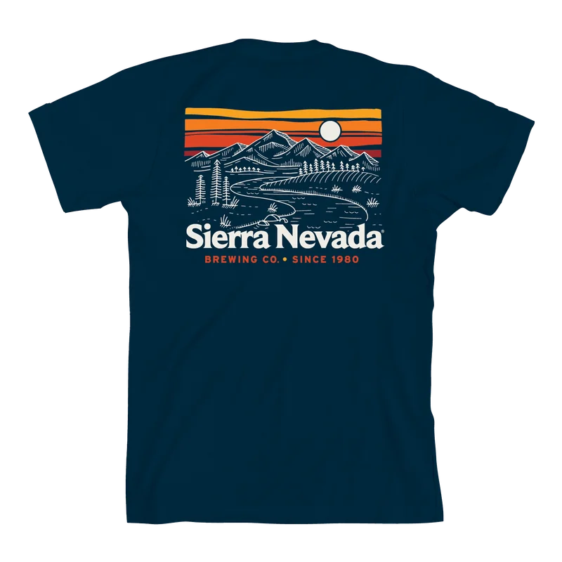 A relaxing shirt with even more relaxing vibes, now in a new navy blue color. Subtle in the front, with a large back graphic featuring the Sierras at sunset.Color: Navy100% Cotton Standard Fit Breathable and Lightweight