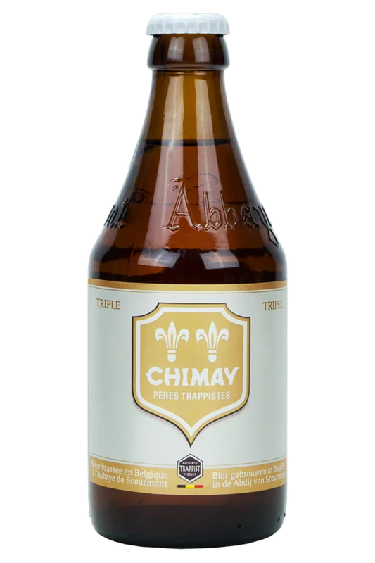 More information about Triple Blanche follows Bleue and Brune. The latest Trappist beer from the Belgian brewery Chimay is a triple with a difference: mildly bitter and with a wonderful balance between hops and malt, Blanche delights with a fine variety of aromas.Chimay’s Tripel flows into the glass in a bright, shiny golden color and is very slightly cloudy. The amber-colored splendor is crowned by a strong head. The bright white head exudes playful floral aromas, which combine with spicy yeast, ripe fruit and brown sugar to create a tantalizing blend. The taste is dominated by the strong carbon dioxide and a surprising hop bitterness. A beautiful fruitiness of sun-kissed fruit and raisins represents the other side of the hops. The malt acts as an elegant counterpart to the hops and adds notes of freshly baked bread to the aroma. A range of typical Belgian spices gives the beer that certain something. The Chimay Triple Péres Trappistes is best enjoyed at a good temperature of six to eight degrees and accompanied by a cheese platter. The cheese brings out the full-bodied aroma of the triple. We recommend a selection of Camembert, blue and hard cheeses with sweet fruit bread and red onions reduced with balsamic vinegar. A good mustard and stone-baked bread with a crispy crust make the meal perfect.