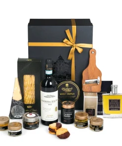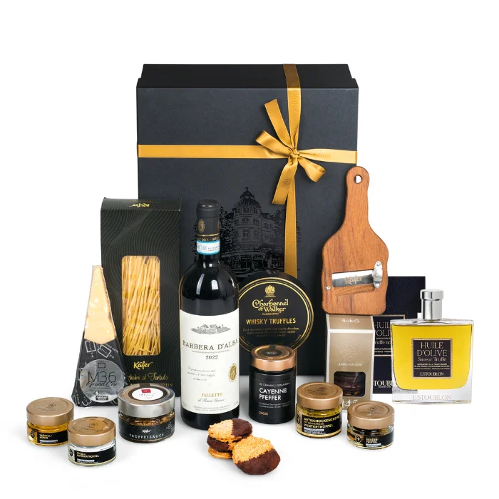 Dieses Präsent ist eine Hommage an die Königin der Feinkost – den Trüffel. Mit seiner unvergleichlichen Aromatik veredelt er jedes Gericht und macht aus einem Essen ein Festmahl. Sorgfältig zusammengestellt, vereint diese Kollektion die edelsten Zutaten für ein luxuriöses Dinner zu Hause: