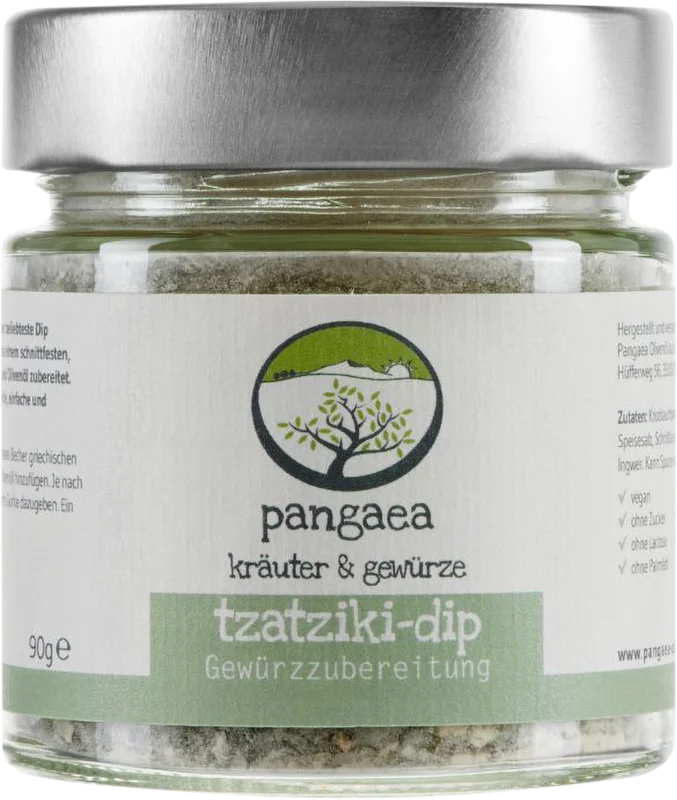 More information about Tzatziki spice mix Tzatziki or Tsatsiki or also Zaziki is the most popular dip in Greece. Traditionally, tzatziki is prepared from a firm, drained yogurt, cucumbers, spices and olive oil. Ideally, the yogurt should be left to drain overnight. Through the cucumbers and olive oil, it gets some liquid again and thus becomes smooth.With our spice preparation we have developed a delicious and quick variant for you. We use pure ingredients and do without glutamate and preservatives. Preparation: Stir 1 – 2 teaspoons of spice mixture into a cup (approx. 150 g) of Greek yogurt (10%). Add coarsely grated and well drained cucumber according to taste. Leave to infuse for a few minutes – done! Before serving, refine with 1 tablespoon extra virgin olive oil.veganwithout sugarwithout lactosewithout palm fatwithout glutamatewithout colorantswithout preservatives