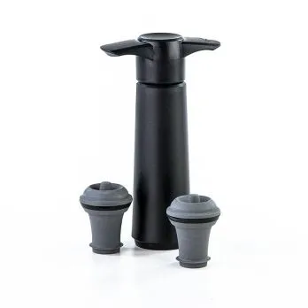 Das ideale Gerät zum Konservieren von angebrochenen Weinflaschen. Einfach den Stopfen aus Gummi auf die Flasche setzen und dann mit der Pumpe Luft aus der Flasche pumpen bis Sie Widerstand spüren und ein leises Klicken hören. Der Stopfen bleibt auf der Flasche wie ein Korken und hält den Wein bis zum nächsten Verzehr schön frisch. Ersatzstopfen: Siehe Artikel 38494