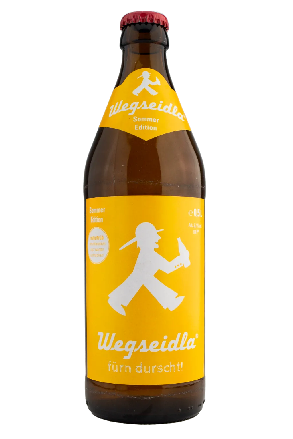 Das helle Sommerbier hat schlanke 3,7 % Alkoholgehalt und punktet mit hoher Süffigkeit. Obwohl es nicht filtriert wurde, fließt es in einem kristallklaren Blassgold ins Glas und schmückt sich mit einem flüchtigen Schaumschleier. Weil man unterwegs selten ein Glas dabeihat, ist der Geschmack jedoch deutlich wichtiger als die Optik und überzeugt auf ganzer Ebene. Das sommerliche Wegseidla ist vollmundig und einfach lecker!