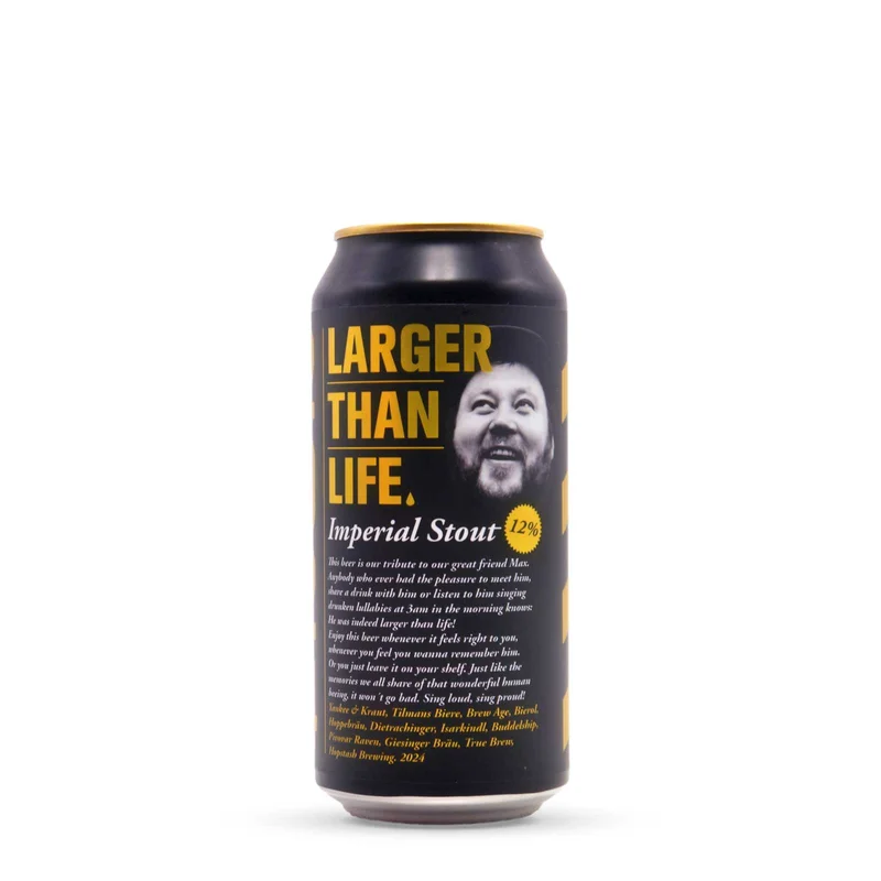 Larger Than Life 2024 ist ein Imperial Stout, das in Zusammenarbeit von Yankee & Kraut und mehreren Partnerbrauereien als Tribut an ihren Freund Max (der „Kraut“) gebraut wurde. Mit kräftigen 12 % Vol. bietet diese Spezialedition ein dichtes, komplexes Geschmacksprofil. Es überzeugt mit vollem, strukturiertem Körper, ausgeprägten Röstaromen, einer ausgewogenen Bitterkeit sowie reichen Noten von dunkler Schokolade, Kaffee und dezenten dunklen Fruchtaromen.