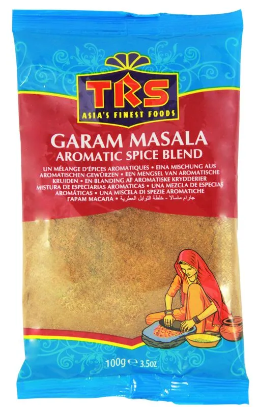 Garam Masala 100g Eine Mischung aus aromatischen GewürzenGARAM MASALA AROMATIC SPICE BLEND Zutaten: Koriander, Kreuzkümmel, Zimt, Ingwer, Pfeffer, Fenchel, Nelken, Anis, Muskatnuss, Kardamon. Allergiehinweis: Wurde in einem Betrieb verpackt, der auch Senf, Getreide und Milchpulver verarbeitet. Inhalt: 100g Mindestens Haltbar bis: 30. 12. 2026 USAGE / VERWENDUNG: Do not consume uncooked.Nicht ungekocht konsumieren. STORAGE / LAGERUNG:To retain freshness and flavour store in an airtight container, in a cool dry place.Zum Erhalt von Frische und Geschmack in einem luftdichten Behälter kühl und trocken lagern. Herkunft: Indien Packed in UK. (gepackt in Großbritannien) / Milled in UK Hersteller:TRS Wholesale Co. Ltd,Southall Middlesex, UB2 4AXEngland. UB2 4AX Versandgewicht: 130g Durchschnittliche Nährwertangaben pro 100g Average Nutritional Values per 100g Brennwert / Energy 1493 kJ / 361 kcal Fett / Fat 17,7g davon gesättigte Fettsäuren / of which saturates 0,97g Kohlenhydrate / Carbohydrates 57,85g davon Zucker / of which sugar 1,38g Ballaststoffe / Fibre 41,58g Eiweiß / Protein 13,44g Salz / Salt 0,138g
