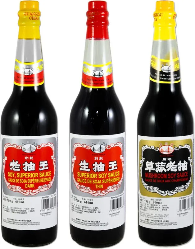 3 verschiedene Sorten Sojasauce von Haiyin Bridge (Dunkel, Hell, Pilz) Sojasoße