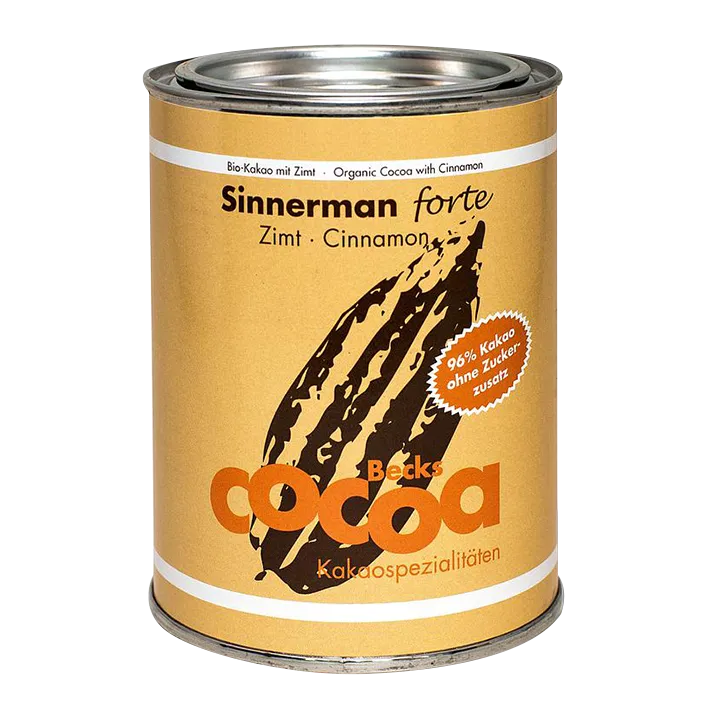 Sinnerman forte ZimtEin aufregender Edelkakao mit natürlichem Zimt aus Java und einem Hauch Kardamom – eine sehr orientalische Gewürzmischung. Dieses tolle Aroma der Sinnerman Trinkschokolade jetzt auch mit 96% Kakao ohne Zuckerzusatz! Lieferumfang Zutaten: * aus kontrolliert biologischem Anbau Zubereitung Aufbewahrungshinweise: Schreibe die erste Bewertung für „BecksCocoa Bio Sinnerman forte, 250g Dose“Anmelden |