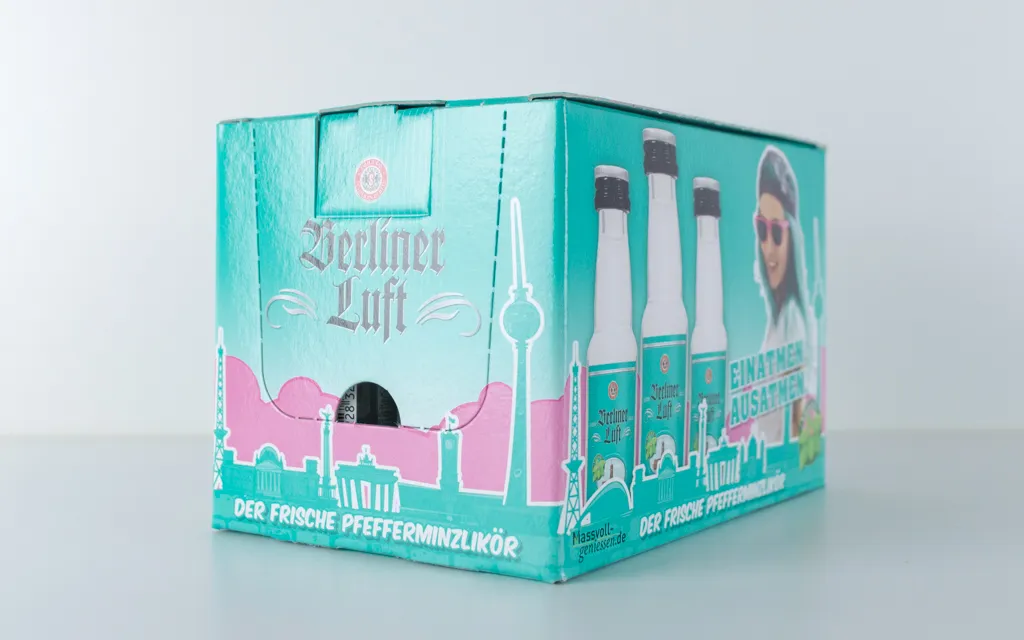 Der frische Pfefferminzlikör. Klar und frisch, wie die Berliner Luft eben so ist. Das Kultgetränk der Berliner Partyszene ist stets ein gern gesehener Gast. Gut gekühlt ist die Berliner Luft nicht nur pur ein kulinarischer Hochgenuss, sondern auch hervorragend zum Mixen von stylischen Cocktails und Longdrinks aller Art geeignet.
